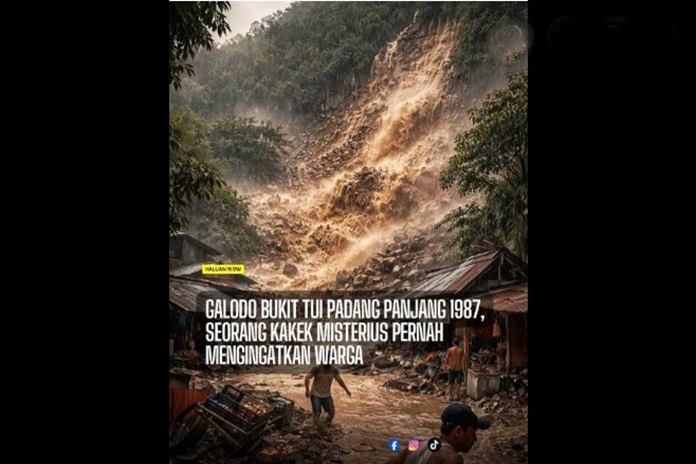 Galodo—istilah Minangkabau untuk longsor besar yang membawa tanah, batu, dan lumpur—meluncur dari lereng Bukik Tui. Gelombang pertama menghantam permukiman di kaki bukit. Rumah-rumah roboh, suara benturan terdengar singkat, lalu sunyi yang ganjil menyelimuti kawasan tersebut.