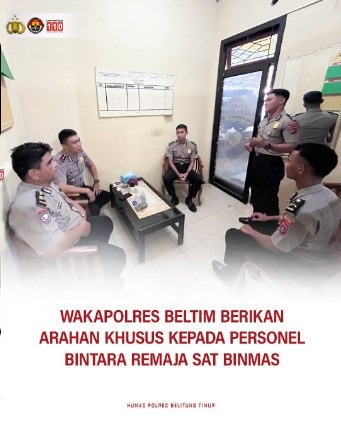 BabelEkspress.Com | JSCgroupmedia ~ Kompol Deddy Nuary, S.H., S.I.K., Wakapolres Belitung Timur, menegaskan komitmennya untuk terus memperhatikan proses regenerasi dan penguatan mental personel Bintara Remaja di jajaran Satuan Pembinaan Masyarakat (Sat Binmas) Polres Belitung Timur.