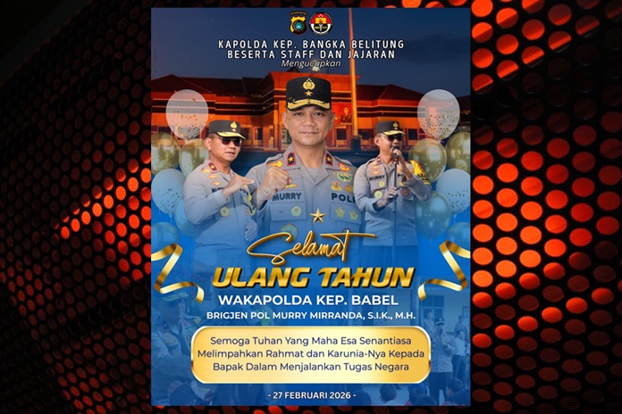BabelEkspress.Com | JSCgroupmedia ~ Suasana penuh rasa syukur dan kebersamaan menyelimuti keluarga besar Polda Kepulauan Bangka Belitung. Dalam momentum yang istimewa, jajaran kepolisian daerah tersebut menyampaikan ucapan Selamat Ulang Tahun kepada Wakapolda Kep. Babel, Murry Mirranda. Doa dan harapan mengalir tulus: semoga Allah SWT senantiasa melimpahkan kesehatan, kekuatan, kebijaksanaan, serta keberkahan dalam setiap langkah pengabdian kepada bangsa dan negara.