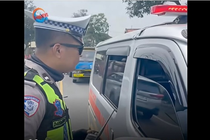 Seorang sopir ambulans diberhentikan oleh petugas kepolisian karena kedapatan menyalakan sirine tanpa sedang membawa pasien atau berada dalam kondisi darurat.