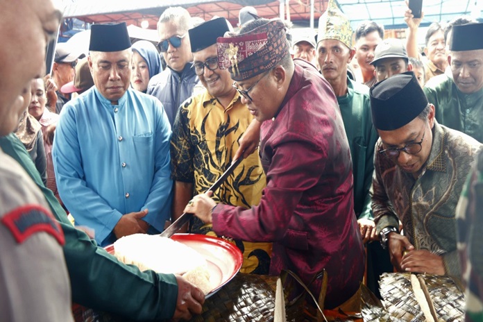 Salah satu prosesi yang paling dinanti adalah pemotongan lepat raksasa—makanan tradisional berbahan dasar beras ketan yang dibungkus daun. Lepat bukan sekadar kuliner, melainkan simbol kebersamaan dan gotong royong.